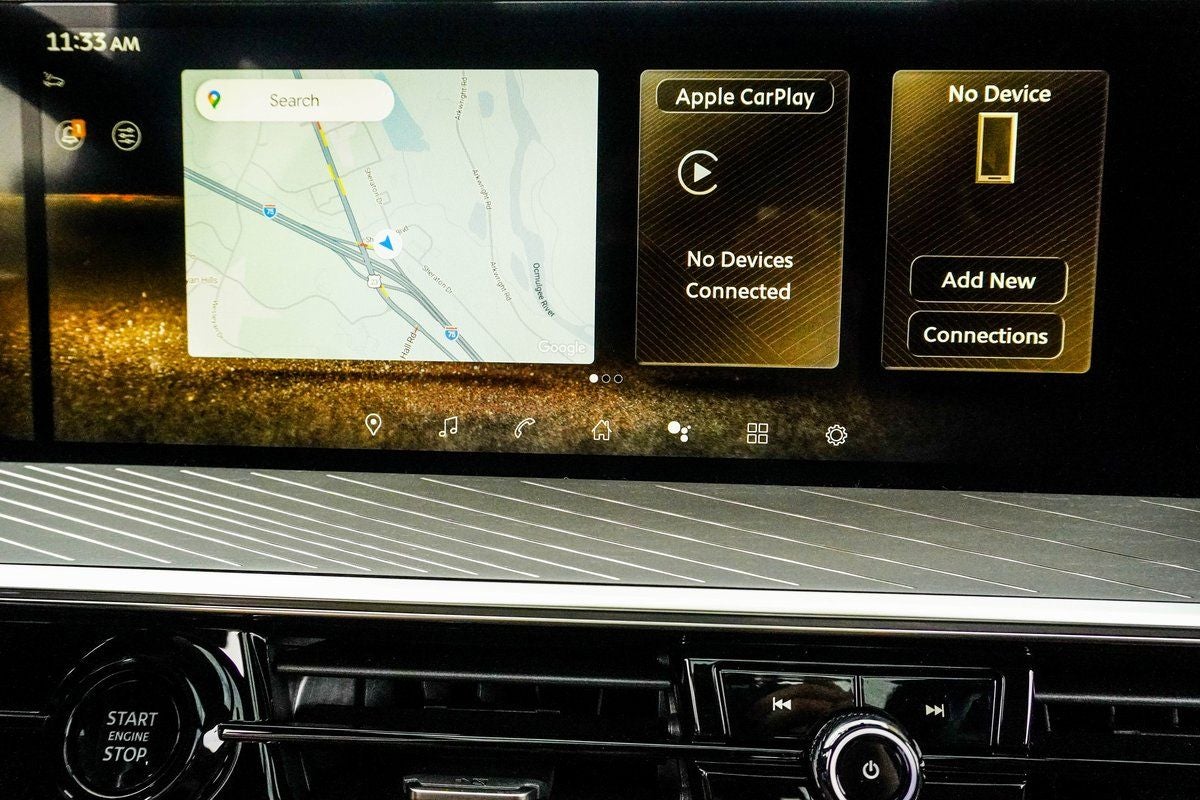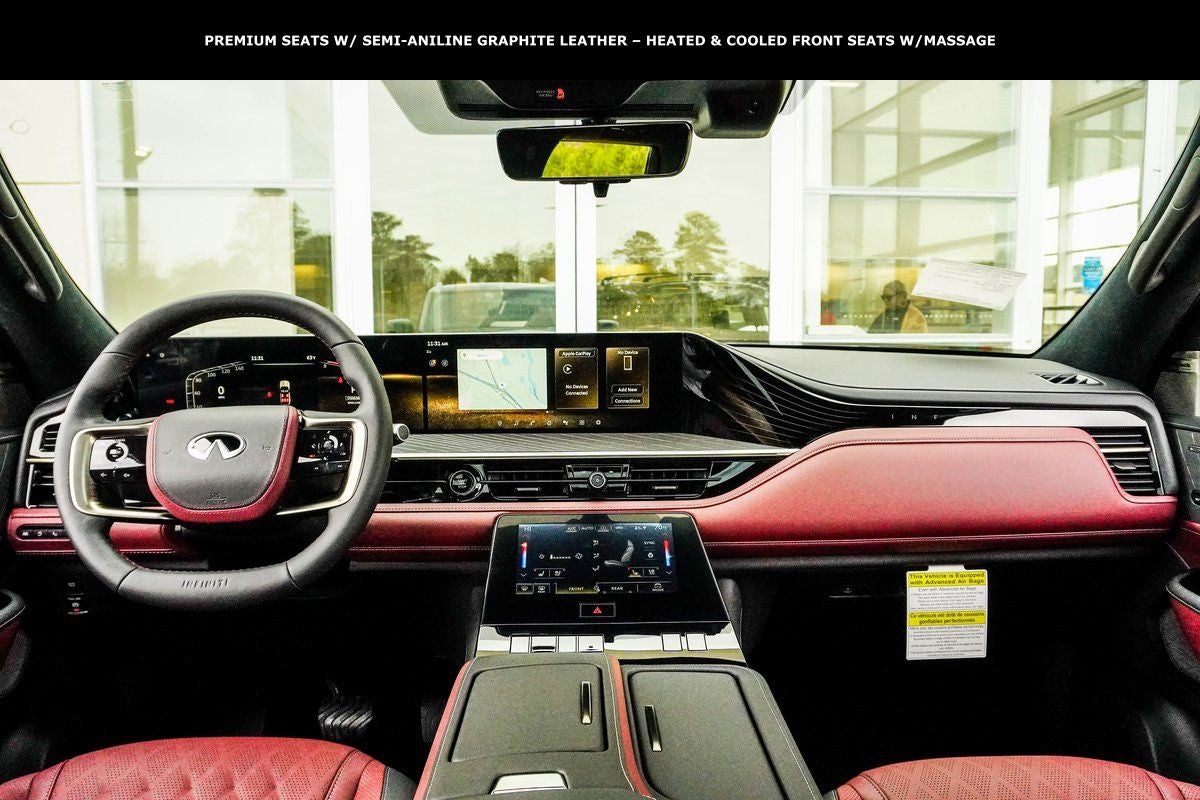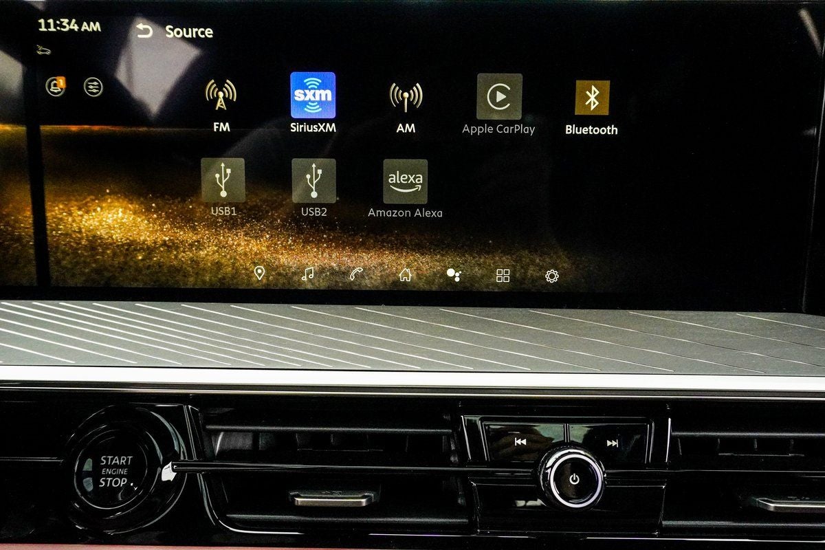 - Radio: Klipsch Reference Premiere Audio System -inc: 24 speakers w/Active Sound Enhancement (ASE), 3D audio, demo mode, individual audio headrest speakers for driver and front passenger, 14.3" infotainment screens w/front control panel, Google built-in w/navigation, Amazon Alexa w/hotword, Bluetooth® hands free phone and audio streaming, wireless Apple CarPlay and Android Auto, hybrid radio, SiriusXM w/360L, INFINITI InTouch services, 5G Wi-Fi hotspot and 2 USB type-C media ports w/iPod interface