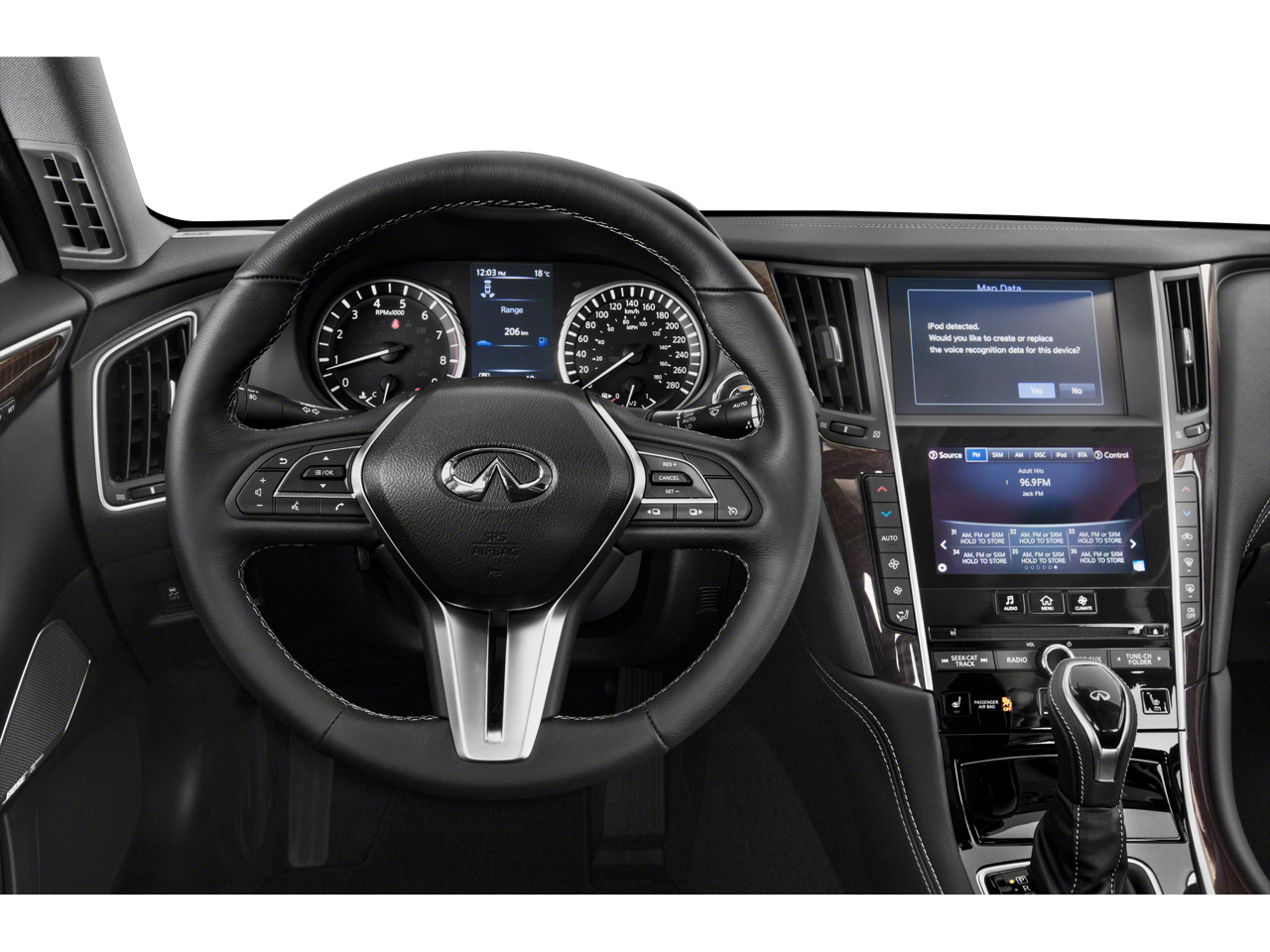 - Radio: INFINITI InTouch w/AM/FM/HD/CD -inc: 16 speaker Bose Performance Series audio w/Bose Centerpoint simulated surround, wireless Apple CarPlay, Siri Eyes Free, Android Auto including Google Voice, Bluetooth® hands-free phone system w/text messaging assistant, voice recognition, Bluetooth® and vehicle information, streaming audio via Bluetooth®, 2 illuminated USB connection ports (1 type A, 1 type C), auxiliary audio input, SiriusXM radio w/advanced audio features w/3-month complimentary trial and Wi-Fi hotspot