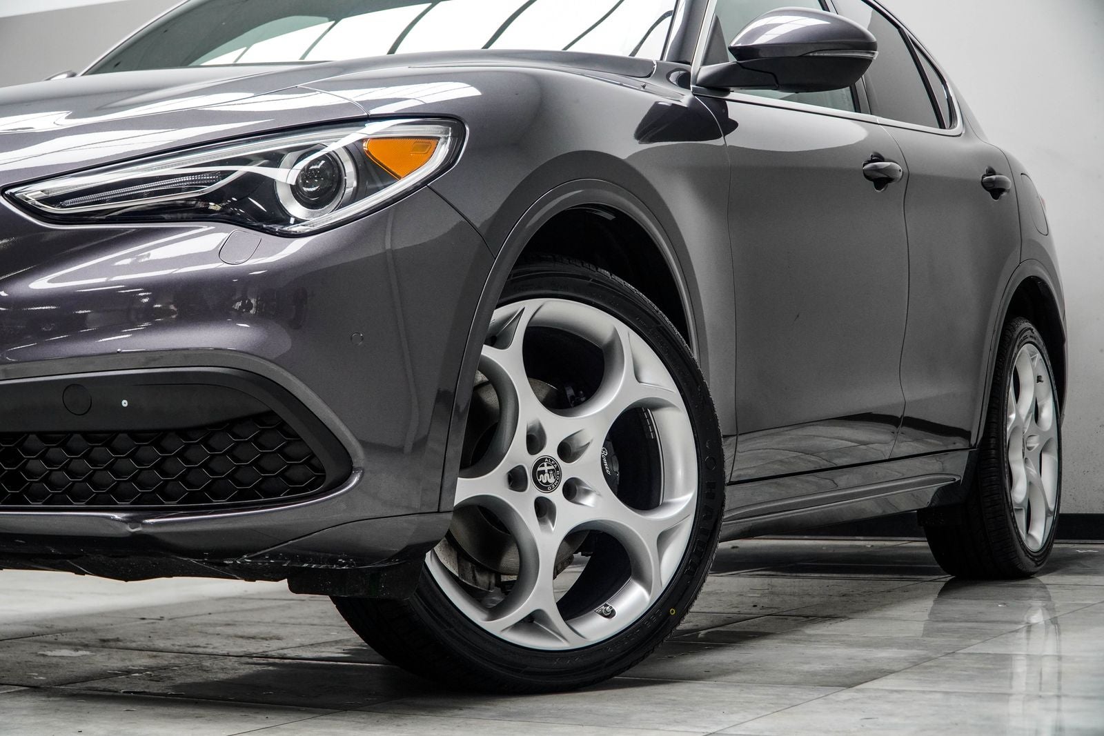 Beneath the stunning Vesuvio Gray Metallic exterior lies a heart of pure performance. The Stelvio Lusso is powered by a potent I4 engine mated to an 8-Speed Automatic transmission, delivering a thrilling driving experience with 22 city / 28 highway MPG. The available all-wheel drive system ensures confident handling in any condition, while the sport-tuned suspension and responsive steering provide a truly engaging drive.