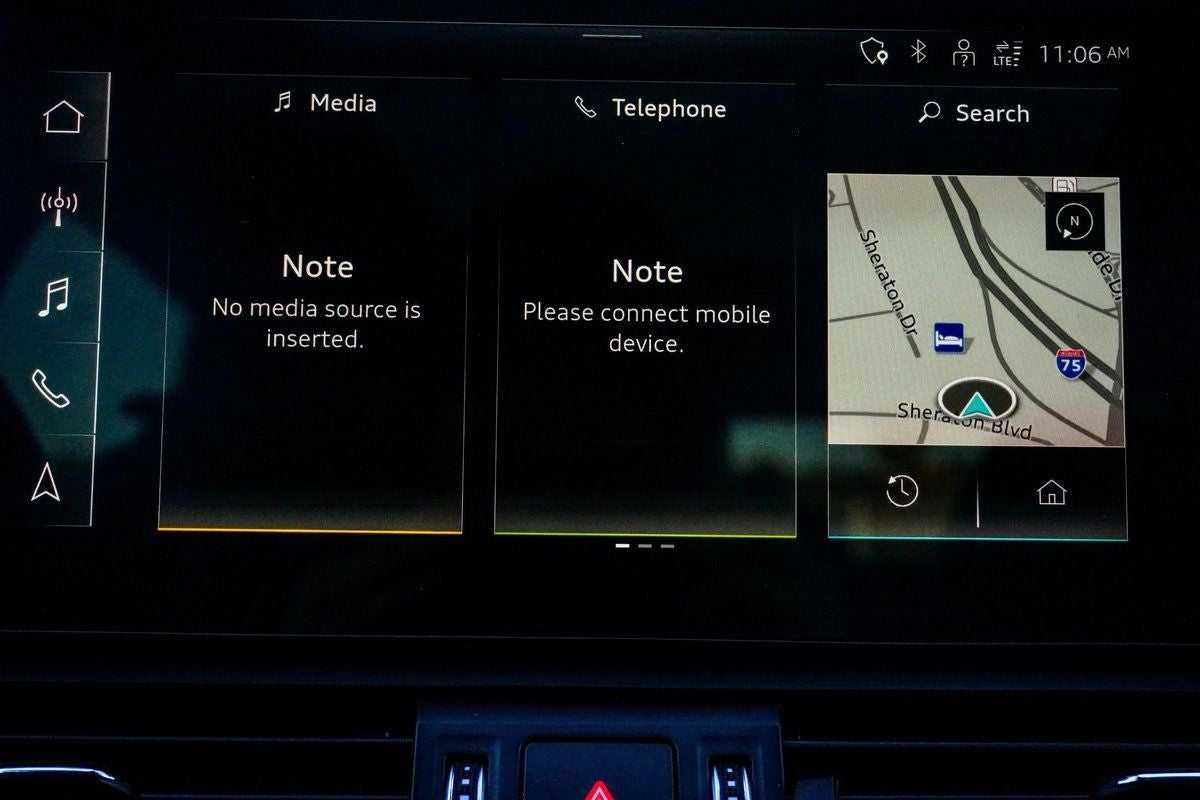 - Radio: AM/FM Stereo -inc: Audi sound system, MMI touch display w/10.1" center screen, preparation for mobile phone (Bluetooth®) and Audi smartphone interface w/wireless Apple CarPlay