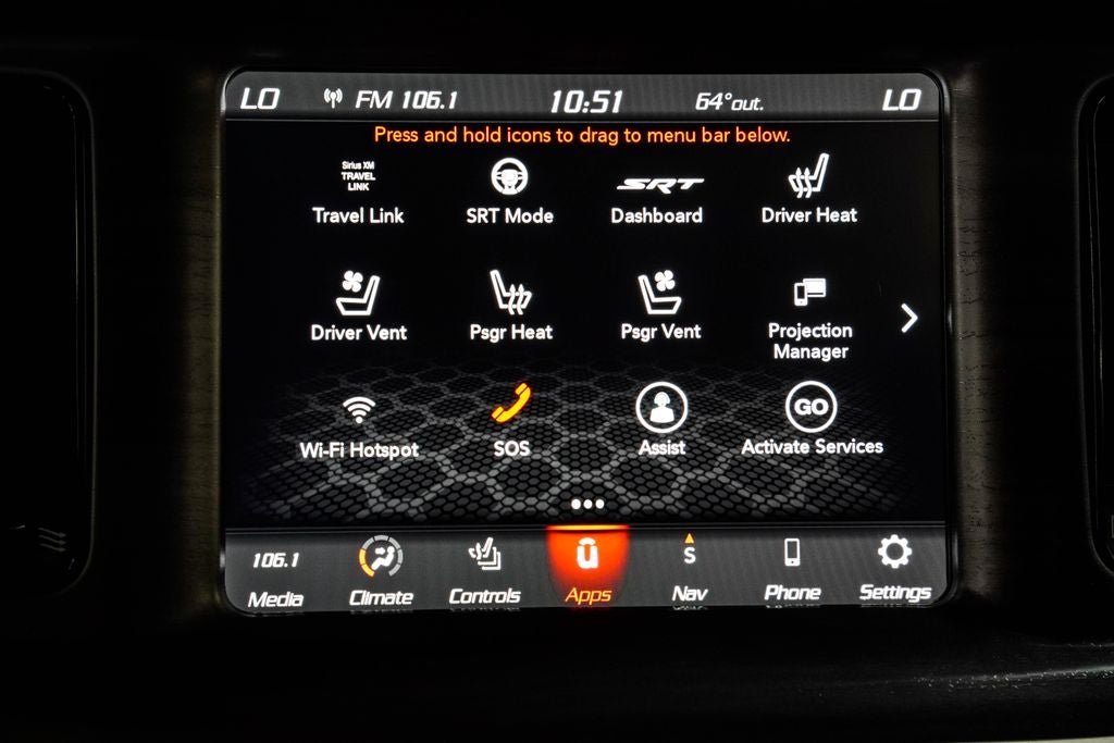 The interior is equally impressive, with Nappa Alcantara seat trim, a premium-stitched dash panel, and a host of advanced technology features. The Uconnect 4C Nav system with an 8.4-inch touchscreen display provides seamless integration of your smartphone, navigation, and premium audio. Adaptive cruise control, lane departure warning, and blind spot monitoring ensure you stay safe and confident behind the wheel.