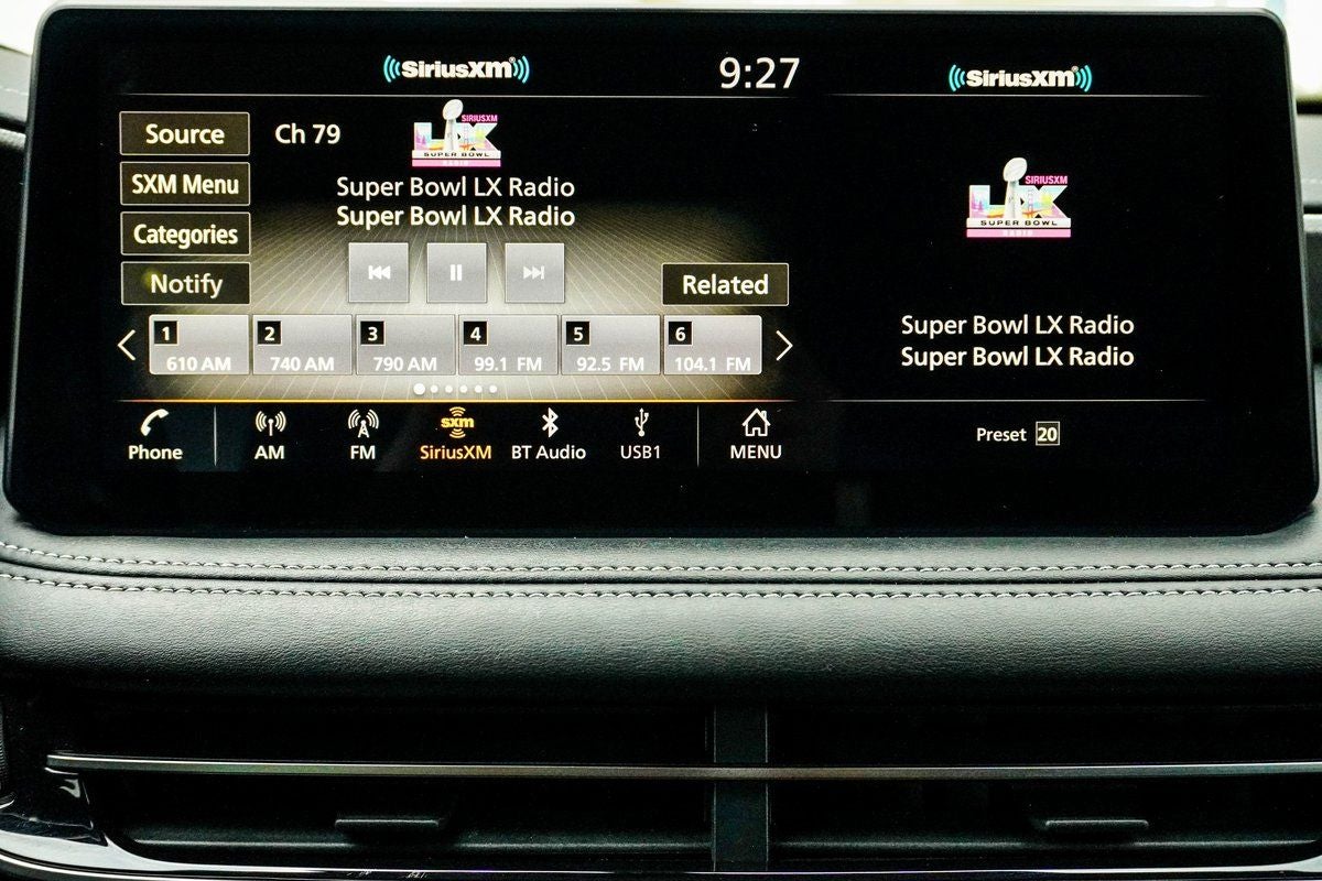 - Radio: AM/FM Audio System -inc: 9 speakers, INFINITI InTouch 12.3" interactive display w/navigation, wireless Apple CarPlay w/integration, Android Auto, Siri Eyes Free, Google Assistant, INFINITI voice recognition, Bluetooth® hands-free phone, HD Radio technology, WiFi hotspot and SiriusXM radio