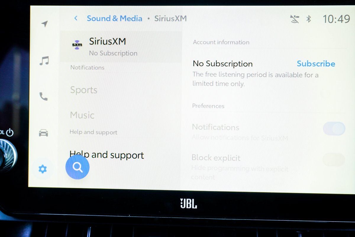 - Radio: JBL Audio System -inc: cloud navigation, 10.5" touch screen, wireless Apple CarPlay and Android Auto and SiriusXM 3-month Platinum Plan trial subscription