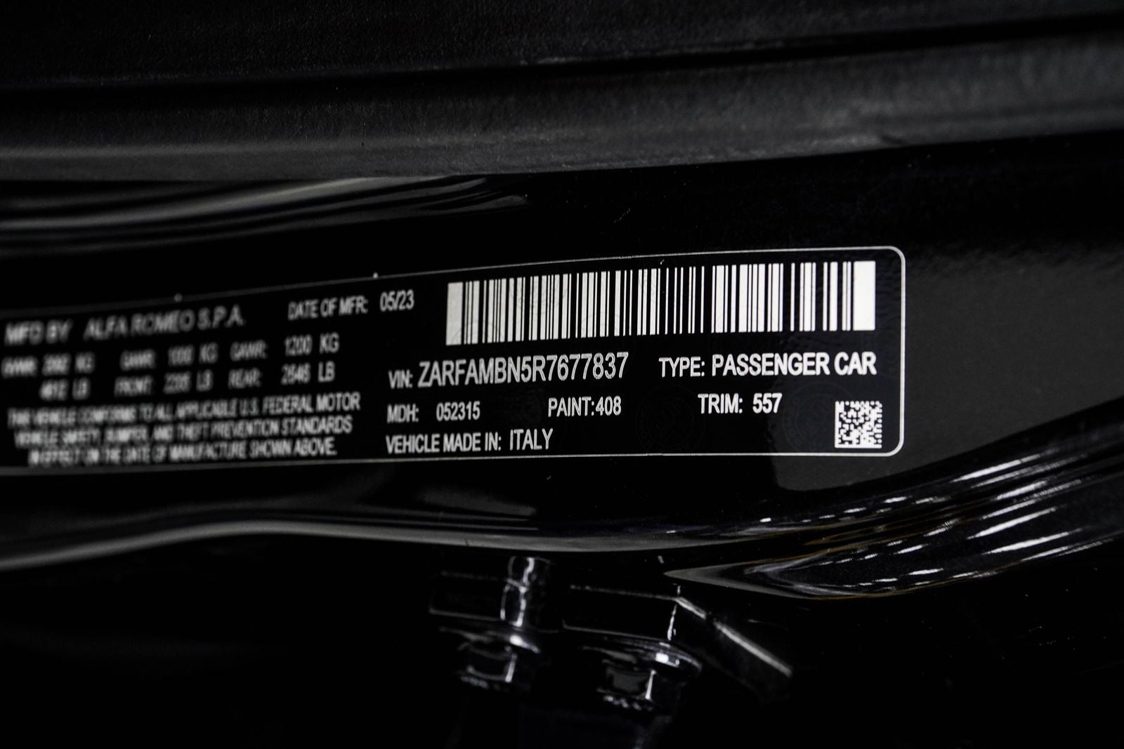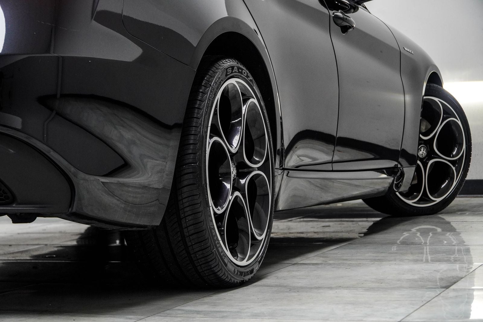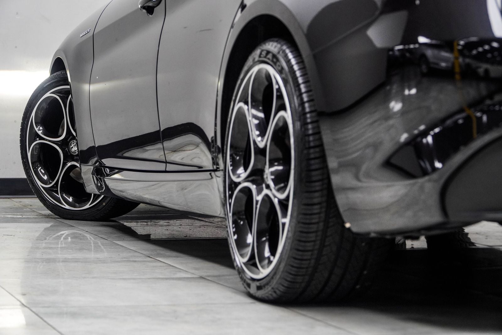 The exterior design is equally captivating, with the Vulcano Black Metallic paint and distinctive Alfa Romeo styling cues, including the iconic V-shaped grille and muscular rear fascia. Step inside, and you'll be greeted by a premium cabin adorned with high-quality materials and thoughtful touches, such as the leather-wrapped sport seats and heated steering wheel.