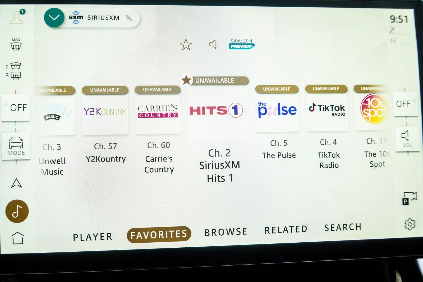 - AM/FM radio: SiriusXM